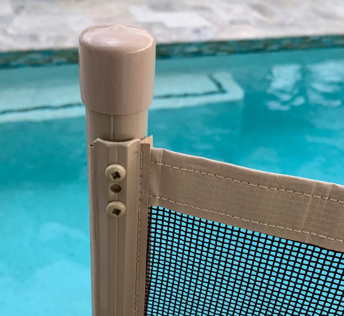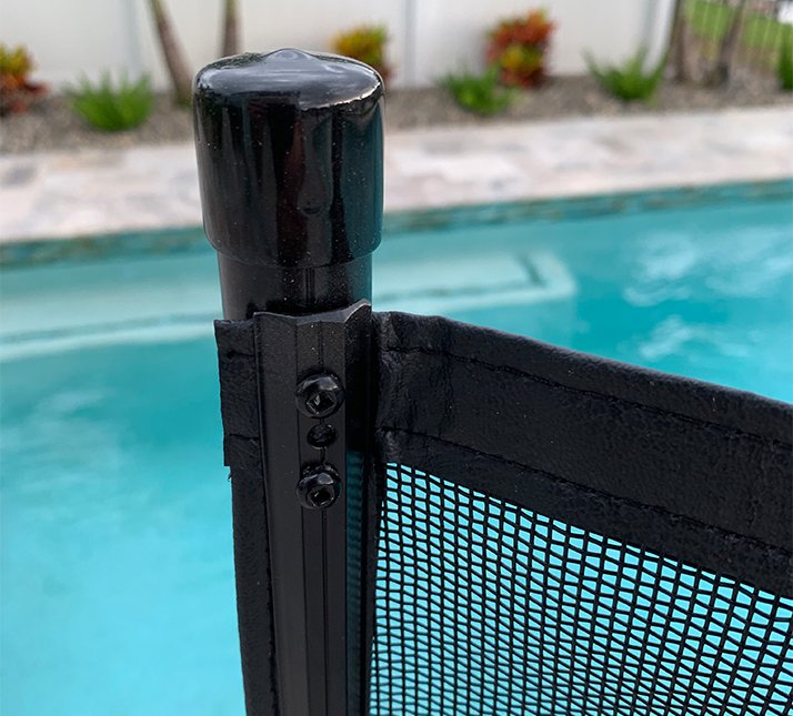 Ideal for matching white screen enclosures, the white pool safety barrier features white poles and a white border paired with black mesh. This combination offers a clean, modern look while maintaining excellent visibility and safety around your pool.